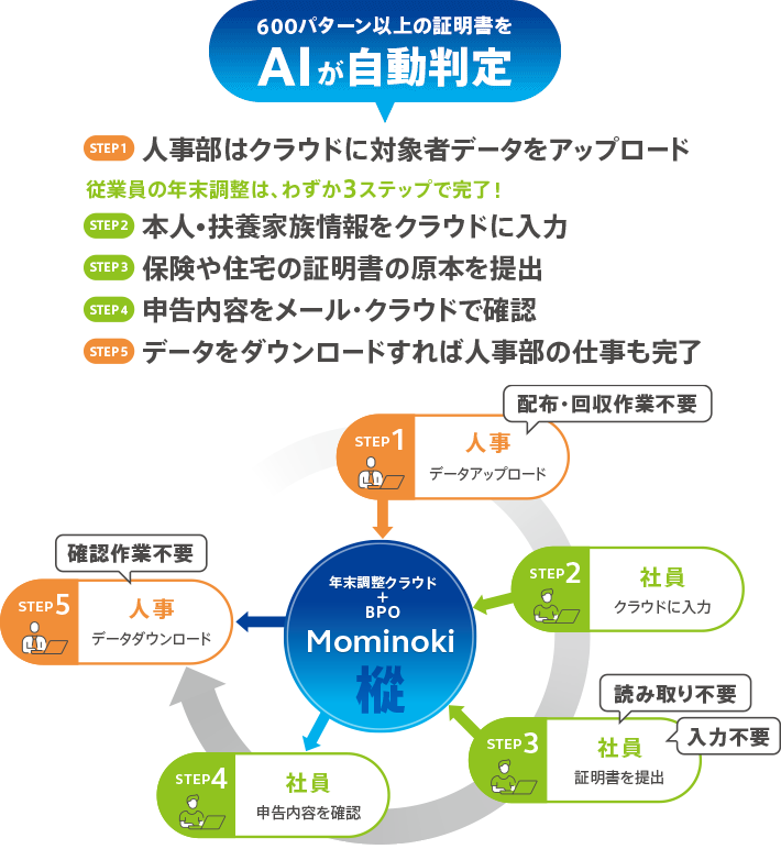 あとは当社に保険や住宅の証明書の原本を送るだけ。面倒な読み取り・入力作業は不要です。人事部の確認作業もなくなります。