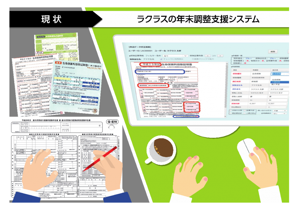 ラクラス株式会社は、年末調整の申告データと控除証明書とを照合する工数を60%削減する「年末調整支援システム」を開発しました。
